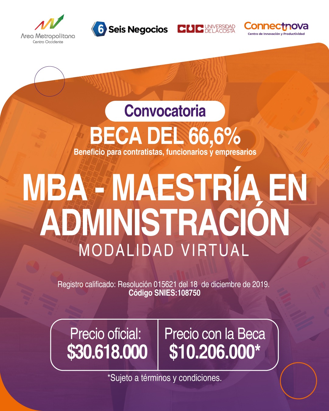 La Universidad de la Costa CUC, en el Caribe en Alianza con Connectnova y La Camara de Comercio de San Andres, Providencia y Santa Catalina, y en el Centro Occidente en alianza con Connectnova, Seis Negocios y el Area Metropolitana Centro Occidente, han lanzado una convocatoria de becas para su programa de MBA – Maestría en Administración, en modalidad virtual. Esta es una excelente oportunidad para formarte en una de las instituciones más prestigiosas de Colombia, reconocida con acreditación de alta calidad y posicionada como la número uno en el Caribe y la segunda en todo el país.